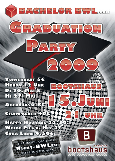 Am Montag, den 15.06.09, wird ab 21:00 Uhr die Graduation Party der Class of 2009 im Bootshaus Mannheim steigen.